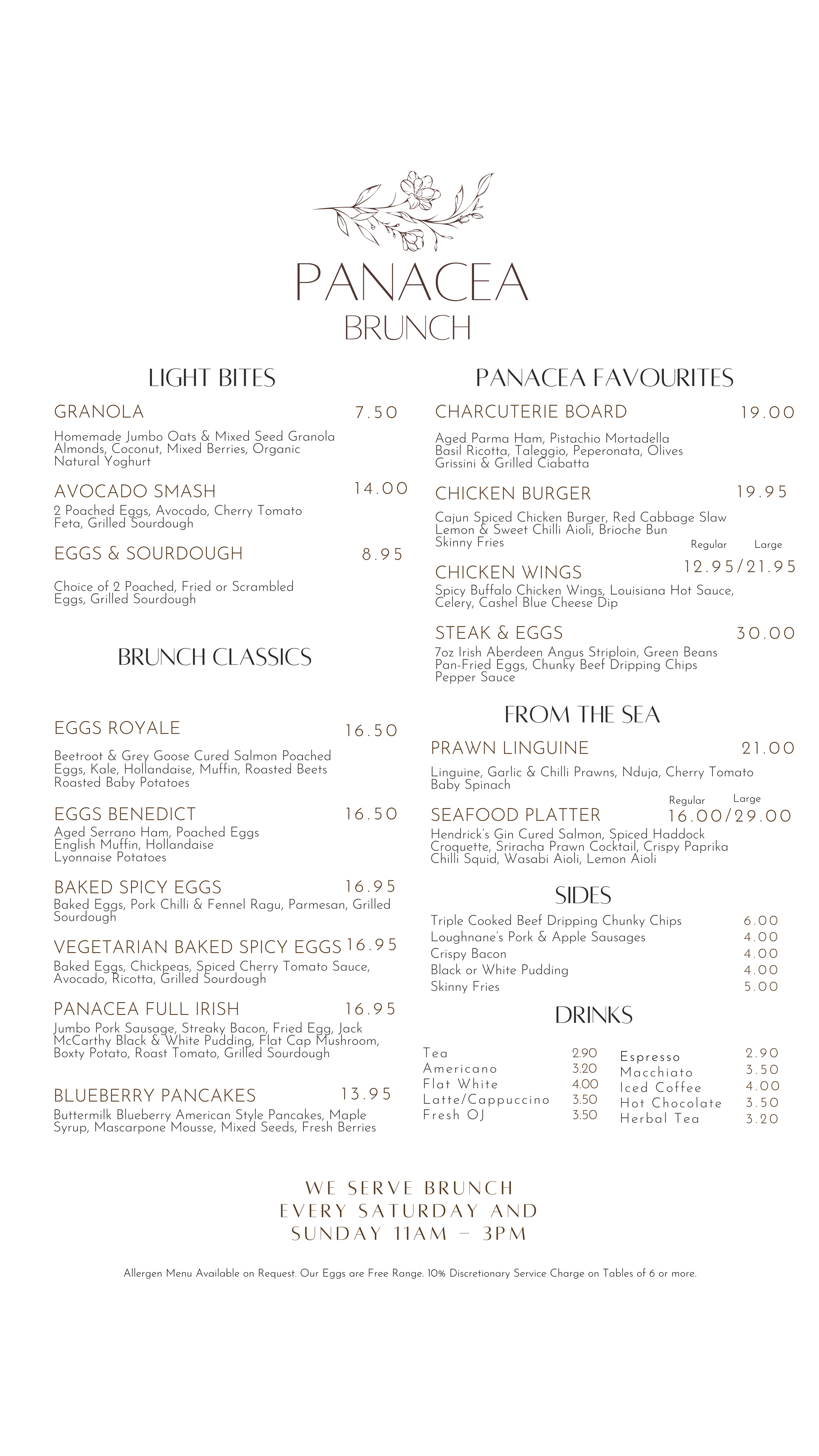 PANACEA WEEKEND BRUNCH MENU