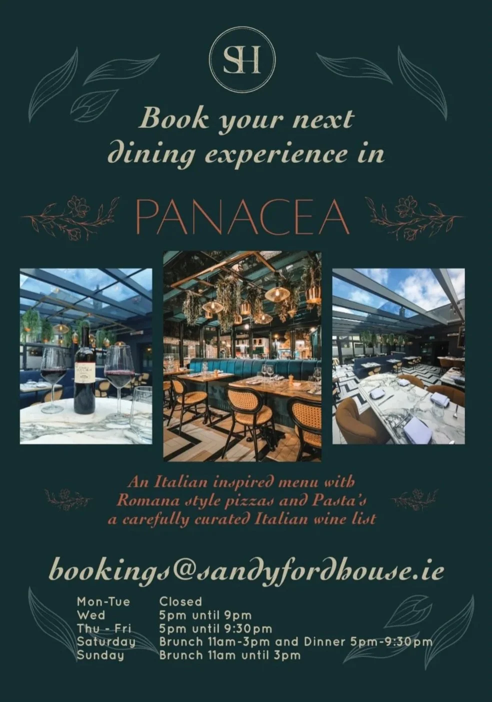 Book into panacea for a night you won't forget taste the Italian cuisine www.sandyfordhouse.ie/bookings